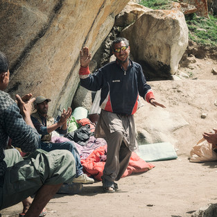 W obozie Goro II, kiedy już czuliśmy obecność K2, które to mieliśmy zobaczyć kolejnego dnia emocje dały o sobie znać i Tomek, postawił sobie za cel, aby nauczyć porterów utworu zespołu Big Cyc - Tu nie będzie rewolucji. Jak wyszło oceńcie sami. Zaufajcie, że skakanie do tego kawałka (którego rytm finalnie nie różnił się niczym od pakistańskich przyśpiewek :) ), na wysokości prawie 4500m n.p.m. jest wycieńczający. Ale było warto!